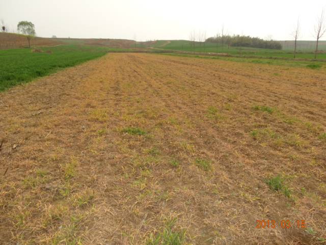 事例一、河南邓州一农户,为防村旁的小麦田的麦苗遭到村里其他人家牛的损毁,在施用华星公司生产的麦佬(30%苯磺隆·苄嘧磺隆WP)+2甲4氯组合防治小麦田阔叶杂草时,加了氧化乐果,结果十多天后去地里看时,全田小麦已连根全部枯死。因为其不合理混用,导致了非常严重的药害事件。见下图一